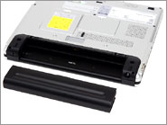 光学ドライブに関しては、CD-R/RW with DVD-ROMだと21,000円、DVDスーパーマルチドライブでも36,750円で購入できる(※価格は3月17日現在)。もう既に持っているからいらないという人は無理に買う必要はないだろうが、まだ持っていないのであれば一緒に購入しておけばなにかと便利だ。しかもこれらの専用オプションの光学ドライブは本体左側面のコネクタから電源の供給を受けられるのでACアダプタいらずで使えるのも便利である。