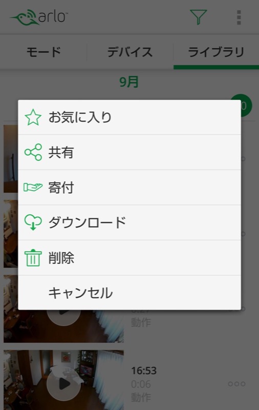 - ひと言コメントをつけた映像をFacebookに投稿します。映像のデータは、ArloからFacebookに直接転送されます。