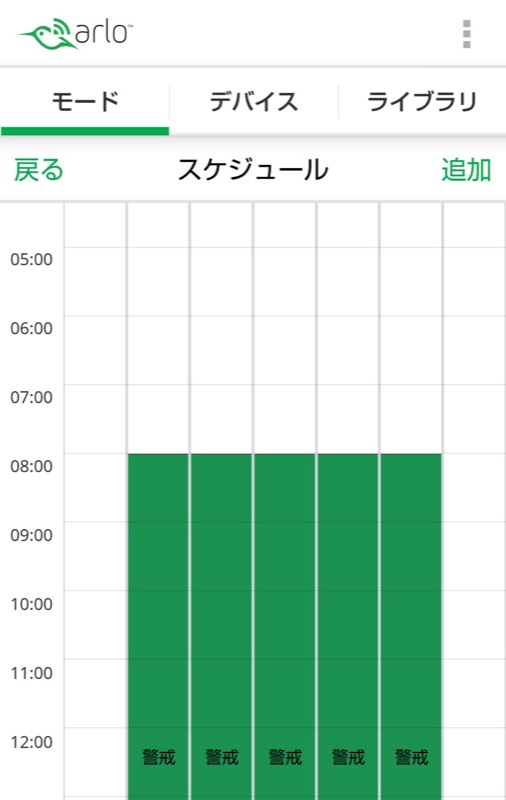 曜日と時刻を指定して警戒モードを変更する