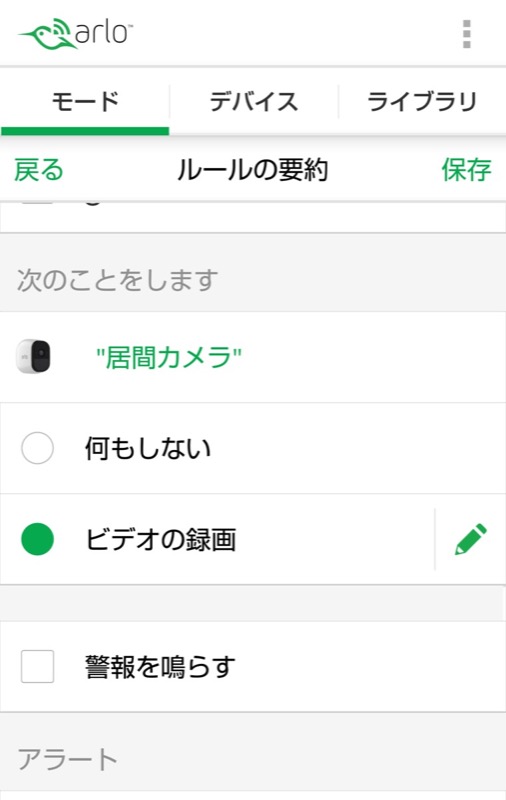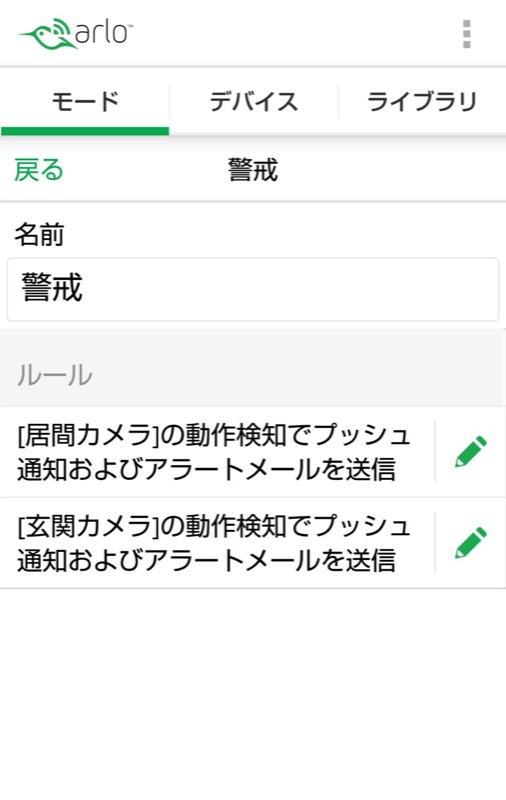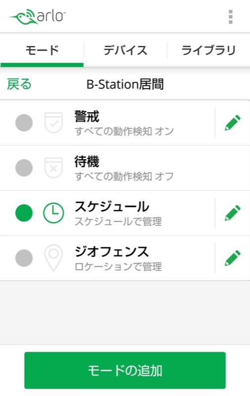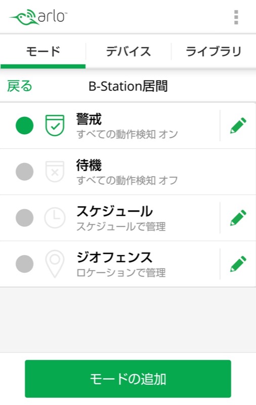 - ベースステーションを選び、通知がうるさいと感じる警戒モードの鉛筆マークの編集ボタンをタップします