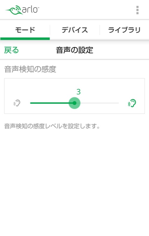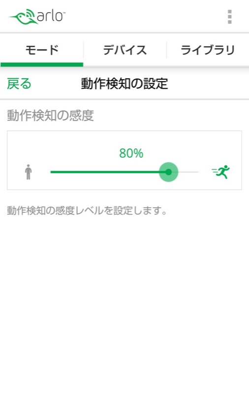 - 「動作検知の感度」のスライドをタップして調整します。