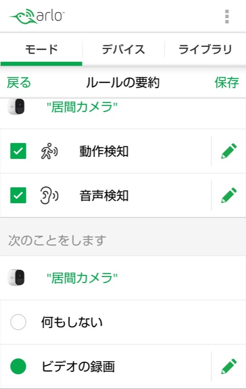 - 「動作検知」の鉛筆マークの編集ボタンをタップします。