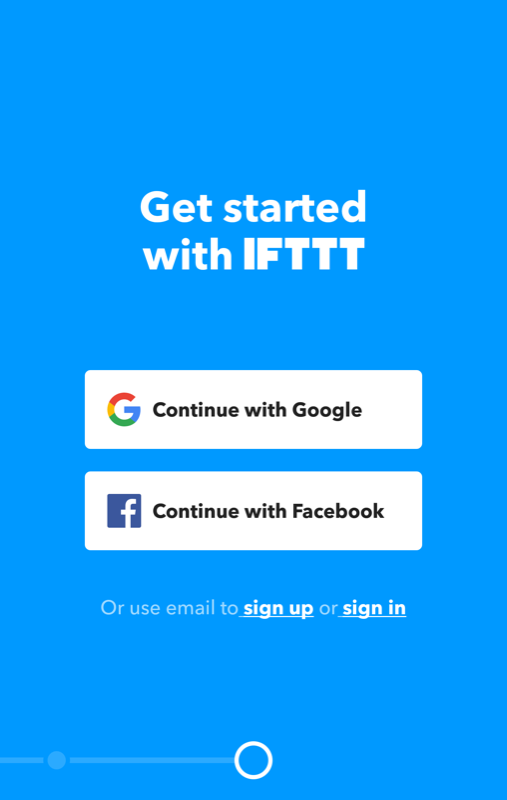 - GoogleやFacebookなどのアカウントを利用して、IFTTTの新規アカウントを作成します