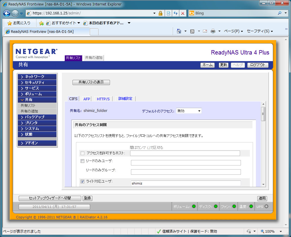 音楽データを「ReadyNAS Ultra Plus」上に保存したいが、家族とは共有したくないという場合は、この方法で使うといいだろう。