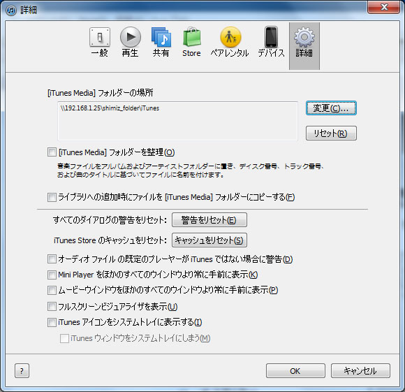 もちろん、共有ではなく、純粋に自分専用のライブラリとして利用するこもできる。「ReadyNAS Ultra Plus」で自分のみがアクセスできる個人用の共有フォルダを作成しておき、iTunesの詳細設定画面で、その共有フォルダを[iTunes Media]フォルダの参照先として設定すれば、音楽データを「ReadyNAS Ultra Plus」上に保存できるようになる。