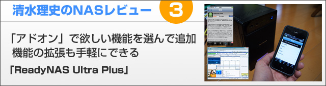 特に、今後のインターネットサービスの状況を考えると、スマートフォンやクラウドサービスとの連携は、NASにとって非常に重要な機能の1つになってくることが予想される。将来的にさまざまなサービスが登場した場合でも、アドオンによって、これらのサービスに対応できる可能性を持っていることこそ「ReadyNAS Ultra Plus」の大きな魅力の1つと言えそうだ。