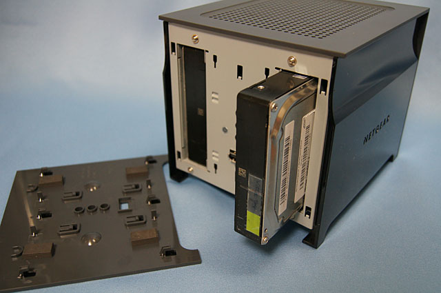 まず、家庭に設置することが考慮された小型で、静音設計のケースのフロントパネルを上にスライドさせて開け、3.5インチのハードディスクをそのまま滑り込ませるように装着。背面の電源ボタンを押して起動する。