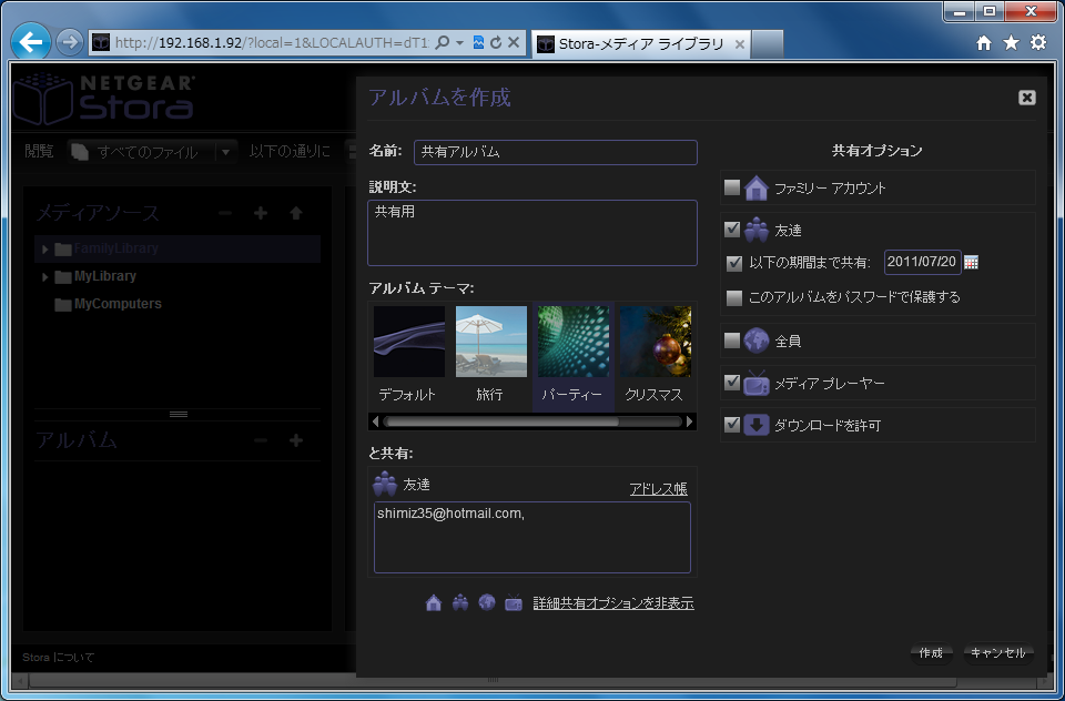 アルバムを作成することで、写真などたくさんのファイルを共有したり、動画ファイルを公開してゲスト用のWebUIから直接再生することもできるので、メディアの受け渡しや公開にも最適だ。