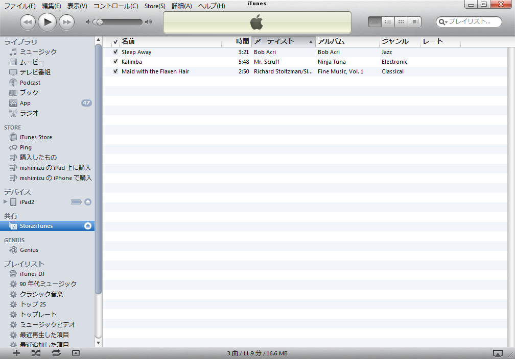 また、音楽に関しては、iTunesからも再生可能だ。Stora(ストラ)にはiTunesサーバー機能が搭載されているため、ネットワーク上のPCでiTunesを起動後、「共有」の項目にある「Stora:iTunes」をクリックすると、Stora(ストラ)に保存されている音楽ファイルをiTunesで再生できる。大量の音楽データをStora(ストラ)で安全に保管できるうえ、ネットワーク上のどのPCからでも音楽を楽しめるのがメリットだ。
