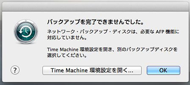 Apple製のTimeCapsuleを利用していたユーザーであれば何の問題もなかったのだが、サードパーティ製のNASやファイルサーバーを利用していたユーザーが、MacをOS X Lionにアップデートしたところ、これまでNASに対して可能だったTime Machineバックアップが突然できなくなってしまったのだ。
