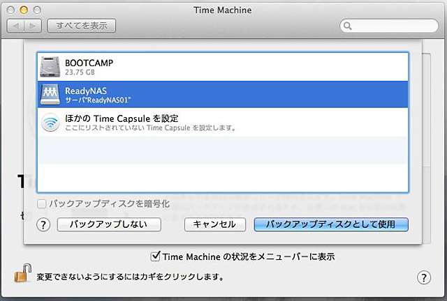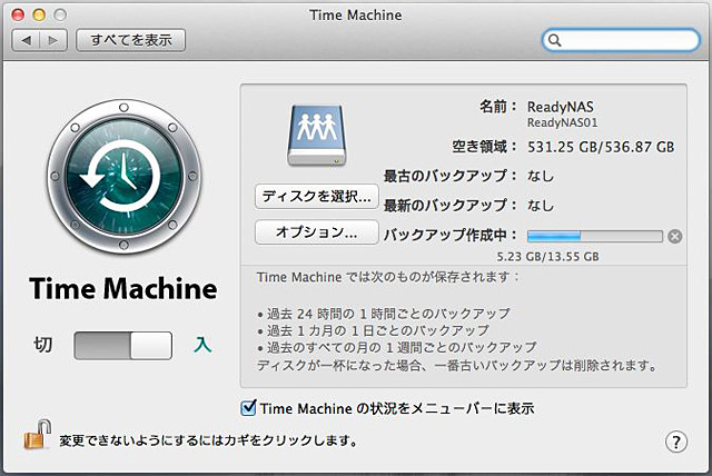 このように、ReadyNASを利用すると、最新のOS X Lionを利用したTime Machineバックアップも問題なく設定することができる。