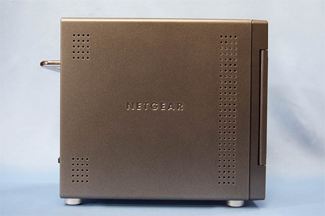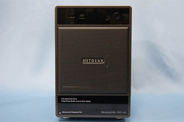 本体デザインは、同社製NASの上位モデルとなる「ReadyNAS Ultra」シリーズとほぼ共通で、前面のメッシュ状のパネルを開けるとHDDベイが姿を現し、上部に電源ボタンやファンクションボタン、USB2.0×1が用意される。