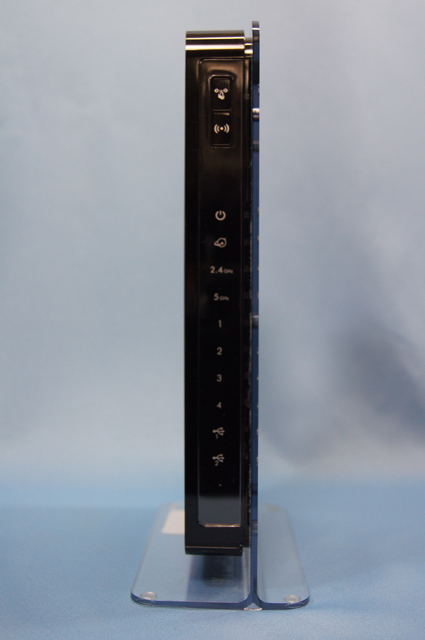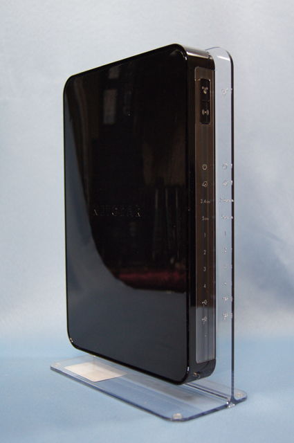 ネットギアと言うと、ReadyNASやスイッチが頭に思い浮ぶため、メタル筐体の無骨なデザインを想像してしまいがちだが、ピアノ調のボディに、台座を兼ねたクリアなサイドパネルを組み合わせたデザインは好印象で、なかなかスタイリッシュだ。高性能な無線LAN環境を求める個人ユーザー宅でテレビやオーディオといった家電と一緒に設置しても違和感のない存在と言えそうだ。
