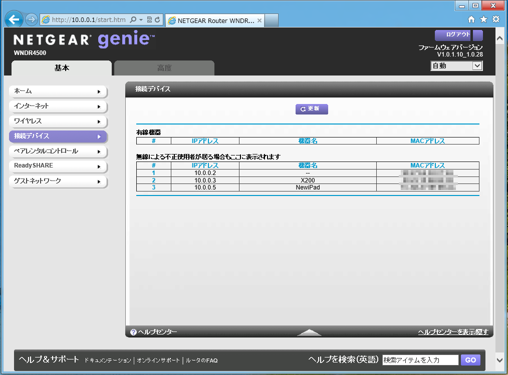 まずは端末の監視だ。WNDR4500では、有線、通常のSSID、ゲストネットワークのそれぞれに接続中の端末を「NETGEAR Genie」から確認できる。機器名などを確認できるので、訪問者が誰も接続していないときなどに接続状況をチェックして、不正に接続している端末がないかを確認するといいだろう。