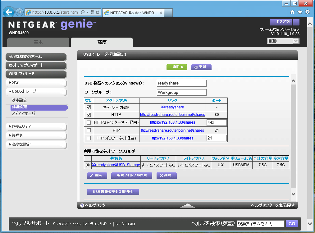このほか、ReadyShareを利用する場合も注意が必要だ。ReadyShareは、WNDR4500に搭載されているUSBストレージの共有機能だ。本体背面にUSBメモリやUSB HDDを接続することで、ネットワーク上の端末からデータを参照することができる。