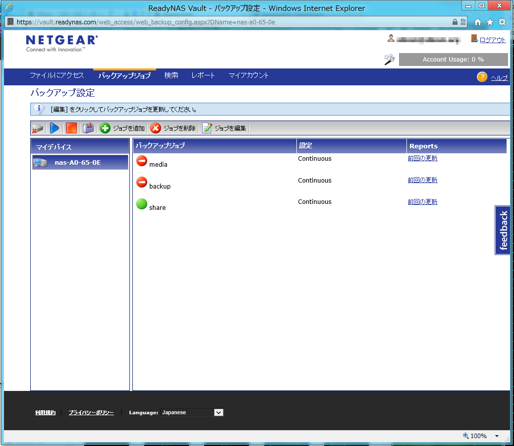 また、こちらも個人用というよりは、SOHOや小規模オフィス向けの機能となるが、バックアップとして新たに「ReadyNAS Vault」を利用可能になった。