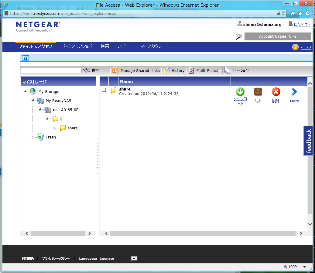 ReadyNAS Vaultは、いわゆるクラウドバックアップ機能だ。5GB/$5.95/月(超過分$0.4/GB)、もしくは50GB/$199/年(超過分$0.25/GB)の有料サービスとなるが(30日間無料で使用可能)、NASのデータをクラウド上のストレージに暗号化して保存することができる。