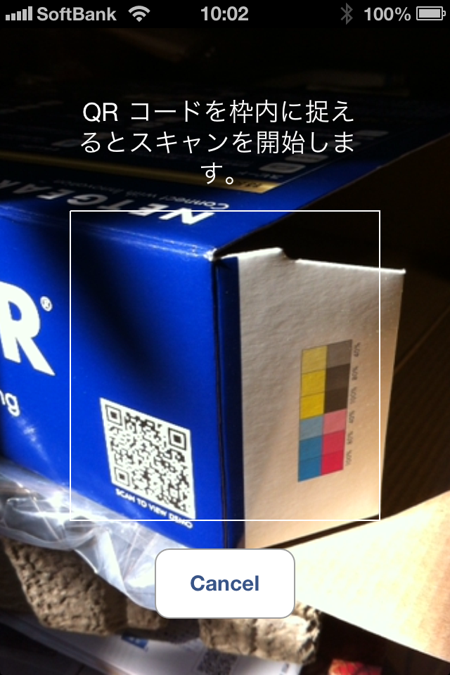 QRコードの読み取り機能。製品パッケージなどに記載されているQRコードから製品情報ページを参照することができる。