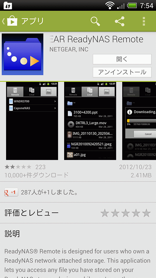 - AndroidのGoogle PlayやiOSのApp Storeを利用して、「ReadyNAS Remote」アプリをダウンロード。
