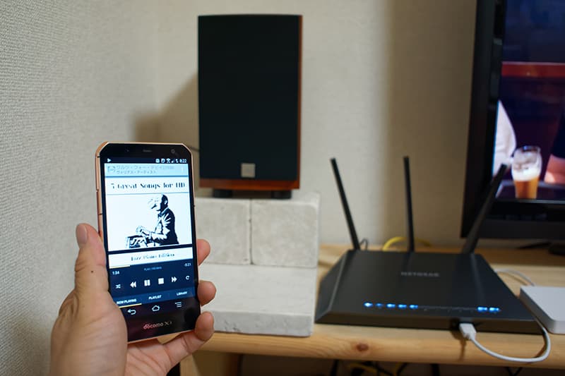 あとはDLNAに対応するスマートフォン用プレーヤーアプリ、もしくはメディアレシーバーなどのAV機器などから再生する。高速な通信速度のおかげで、ハイレゾのような大容量データの逐次ストリーミング再生も途切れることはない。確認したところでは、所有しているWAV/FLAC形式の48kHz~192kHz/24ビットのハイレゾ音源をスムーズに聞くことができた。