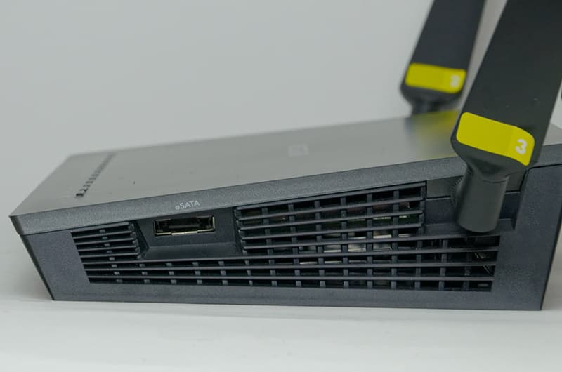 それに加えて、R7500は外付けHDDなどを接続できるUSB 3.0ポートを2個、eSATAポートも1個搭載している。USB 3.0ポートが2個あると、高速なUSB 3.0 HDDを容易に増設できるのが大きなメリットといえる。eSATAポートは、USB 3.0に対して仕様上は若干転送速度が劣るものの、仕組みとしてはHDDと直接的に通信できる規格であるため、効率よくデータ転送できるようになっている。容量を稼ぐならUSB 3.0ポートをフル活用し、速度を求めるならeSATA接続のHDDやSSDを利用する、という使い方も考えられるのではないだろうか。