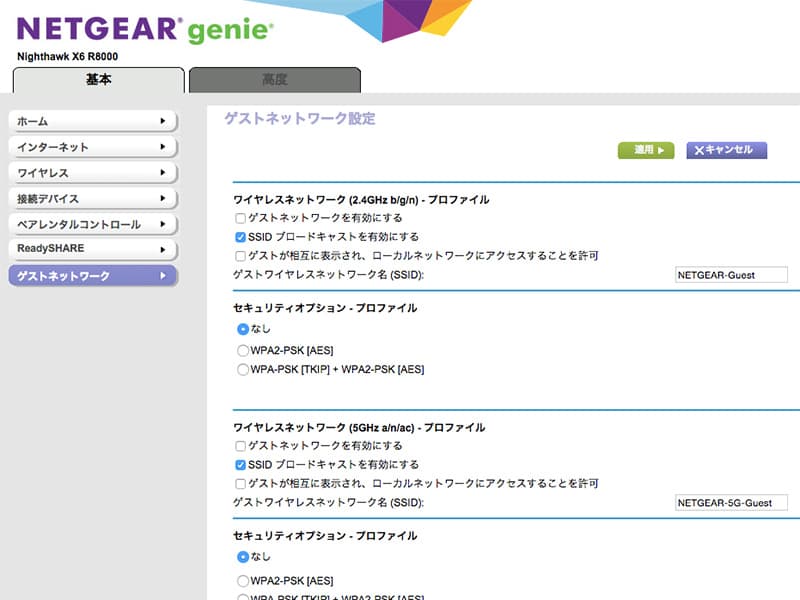 さらにもう1つのポイントは、「ゲストネットワークアクセス機能」。これも他の2機種に搭載されているが、家庭では友人らが遊びに来ることもあるだろうし、オフィス使用では、来社したお客さんがインターネットに接続する必要が出てくるのもよくあること。でも、家庭やオフィスのネットワークにつながる通常のWi-Fiアクセスポイントに接続してもらうのは、どんなに親しい間柄でも、小さな会社であっても、セキュリティ上避けたい。かといって、目の前に確実にあるネットワークを一切使わせないのも心苦しい。