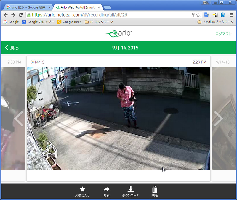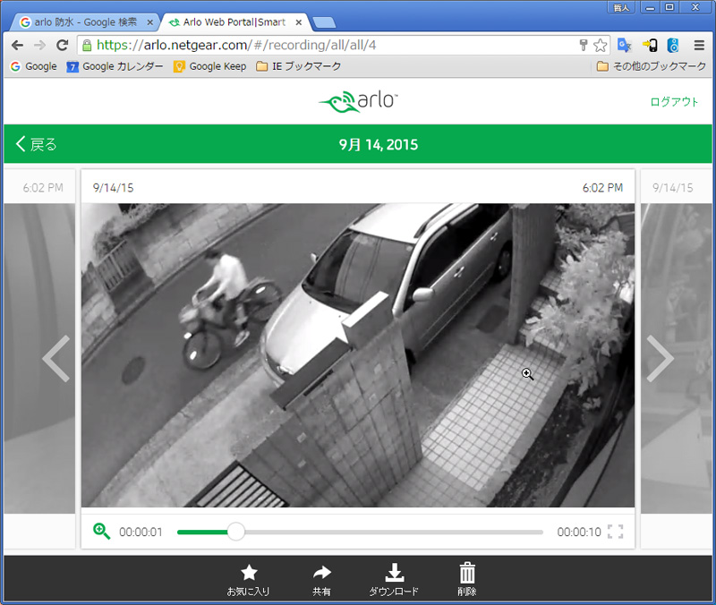撮影した映像はすべてArloのサーバに7日間保存される。もちろん削除やダウンロードも可能