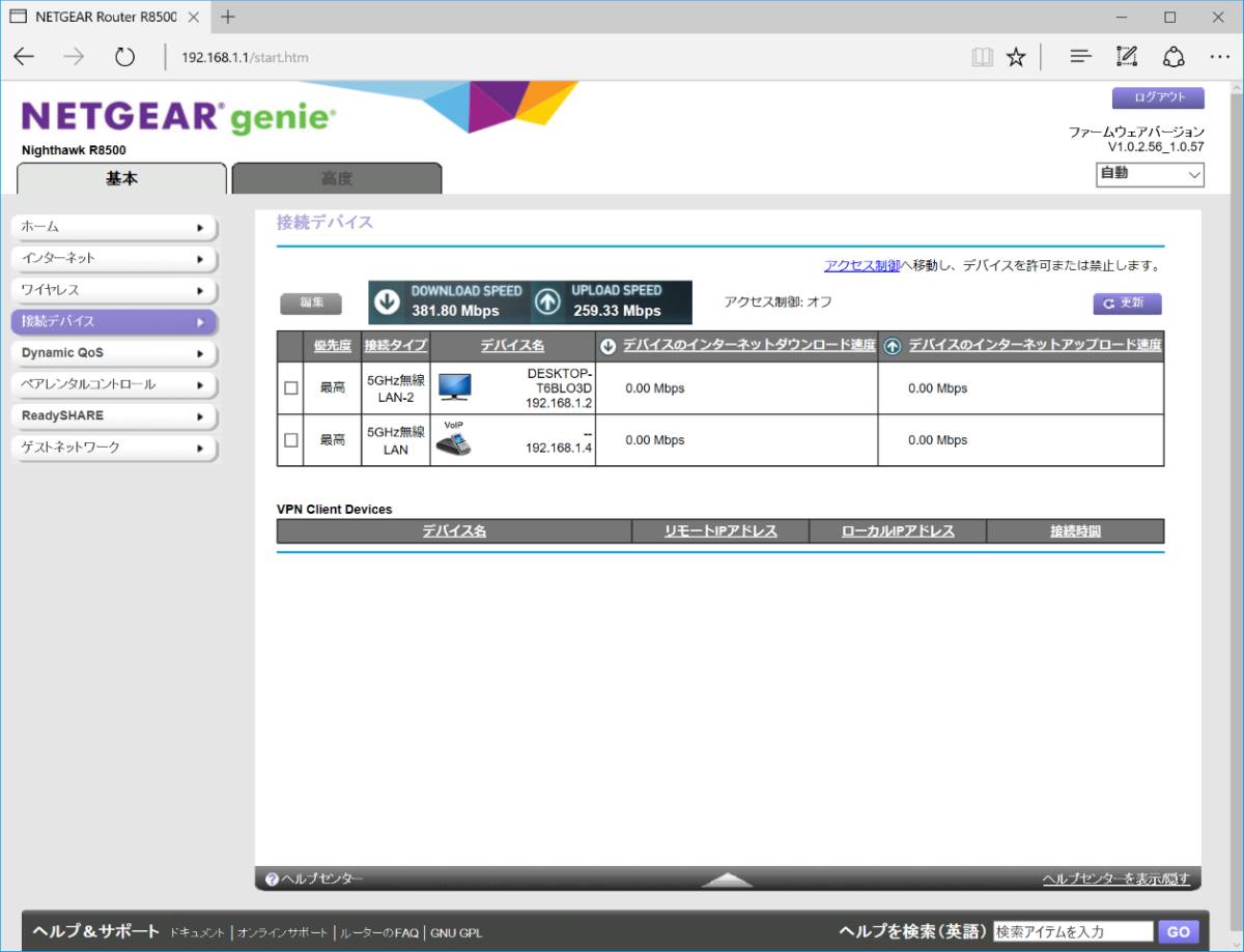 このほか、最近ではセキュリティ機能として訴求する製品も多い接続デバイスの一覧表示機能も当然のことながら搭載する。デバイスによってはiPadやMac、Androidなどのアイコンがきちんと表示されるほか、デバイスごとのダウンロード速度やアップロード速度も表示可能。前述したDynamic QoSと組み合わせることで、優先度を設定することも可能となっているなど、かなり多機能となっている。