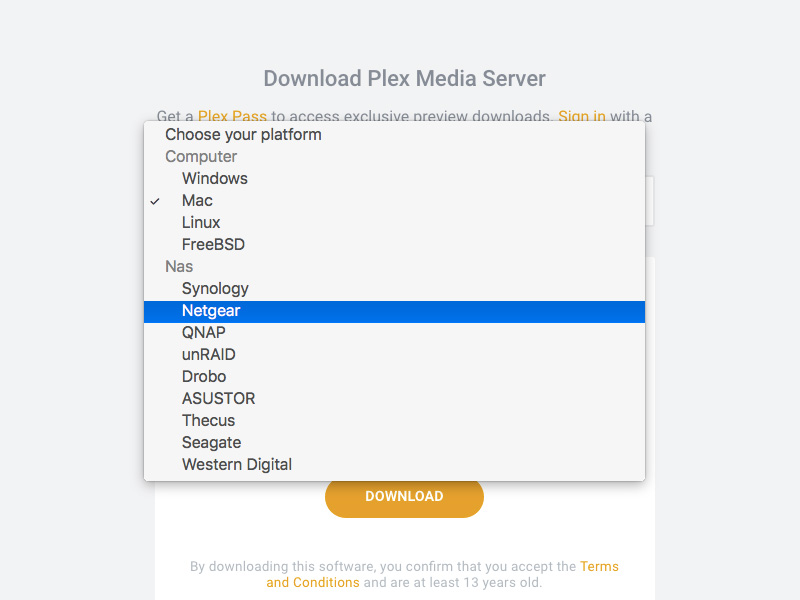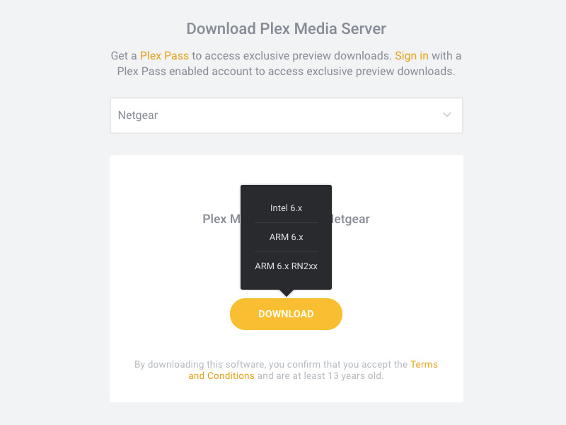 Plexのダウンロードページで「Netgear」用を選ぶ