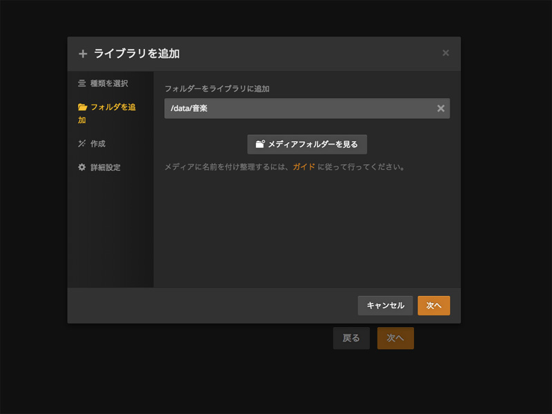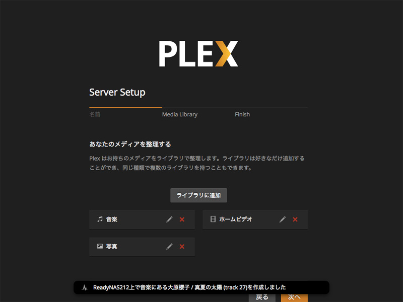 最初に、ReadyNASのフォルダを指定してPlexで扱いたいメディアファイルを認識させる