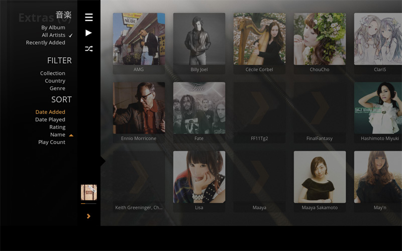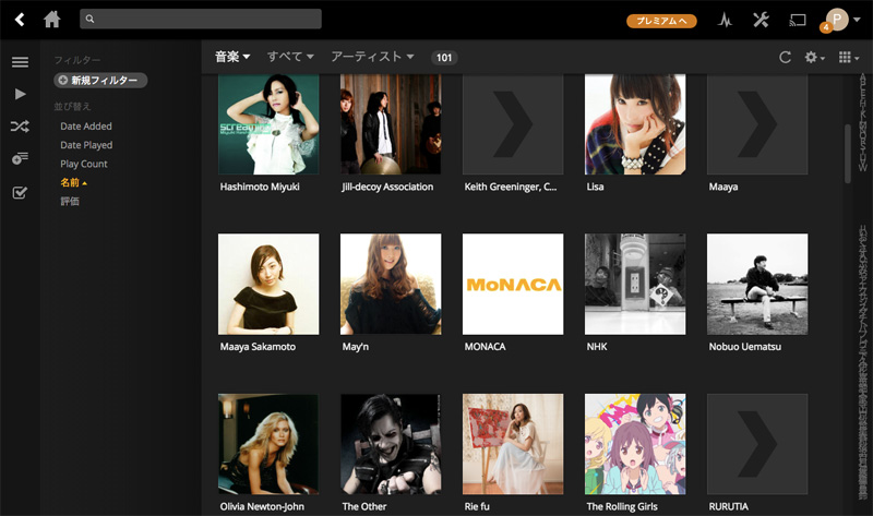 このPlexを使って見るマルチメディアコンテンツの再生は、かなり軽快で楽しい。DLNAだと、クライアントアプリにもよるが、だいたいが素っ気ないファイル一覧から見たいものを探していくことになる。でも、Plexでは音楽のジャケット写真や写真・動画のサムネイルがかなり大きめに、印象的な雰囲気で画面に並び、選ぶまでもなくどのファイルも見たくなってしまう。音楽や動画の再生は待たされず、選択したらすぐに開始し、次々に見ていける。