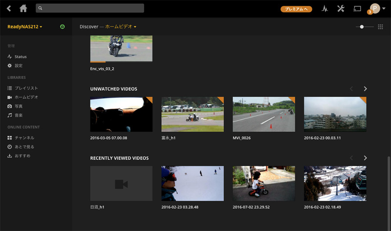 PlexでできることはDLNAに近い。最初に、ReadyNAS 212のストレージに保管しているデータのうち、Plexで表示・再生させたいデータをフォルダ指定で検出し、メディアデータとしてPlex上でいつでも見られるようにしておく。あとはWebブラウザー、PC、スマートフォンと、さまざまな環境向けに用意されているPlexのクライアントアプリを使って、ReadyNAS 212上の写真、動画、音楽にアクセスするだけだ。