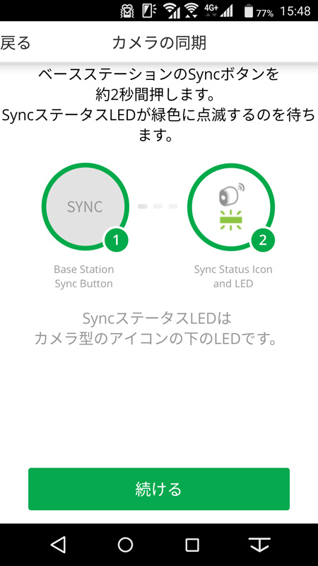 カメラをベースステーションと接続するための設定。アプリの説明に従っていけば簡単に終えられるはずだ