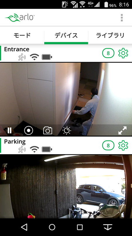 Arloの専用スマートフォンアプリは、初期の接続設定のほかに、カメラの映像視聴、映像の録画、映像などに変化が現れた時に指定した機能を実行する動作モードの設定、といった機能を備える。カメラを設置する際には、カメラ映像の視聴機能を使いながらアングルを細かく調整し、ベストな監視ポジションを探ろう。