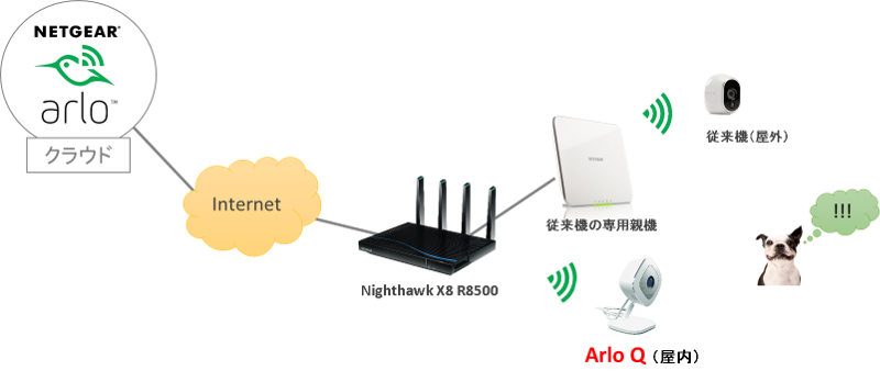 Arloはベースステーションが必要だが、Arlo Qの場合は無線LANルーターに接続できる