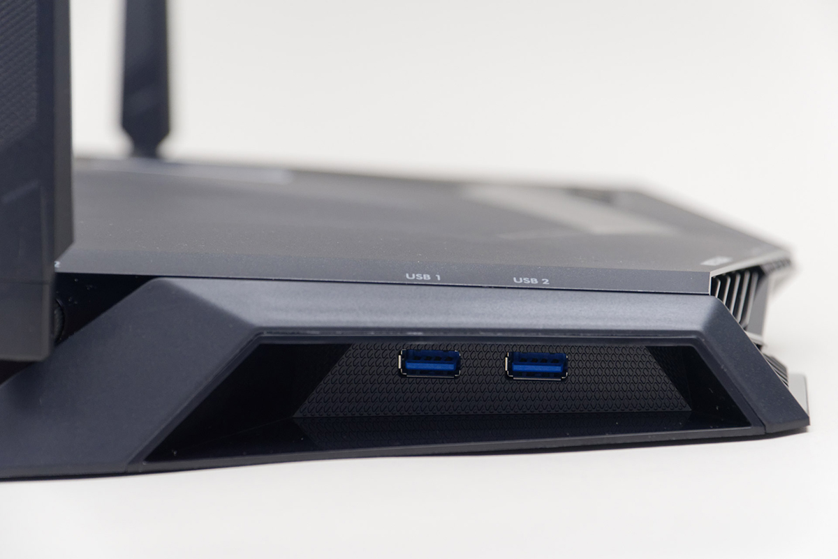 なお、背面に4つあるLANポートはすべてギガビット対応で、デスクトップPCユーザーや、Wi-Fiの遅延すらも気になる人にはうれしい装備。側面には2つのUSB 3.0ポートがあり、USB HDDなどを接続することでXR500を動画・音楽再生用のメディア(DLNA)サーバーや簡易的なNASとして使うこともできる。ハードウェア面の機能としてはこのようにわりとシンプルで、ゲーミングWiFiルーターということもあって、あくまでもゲーム環境に必要な装備のみに絞っているという印象を受ける。