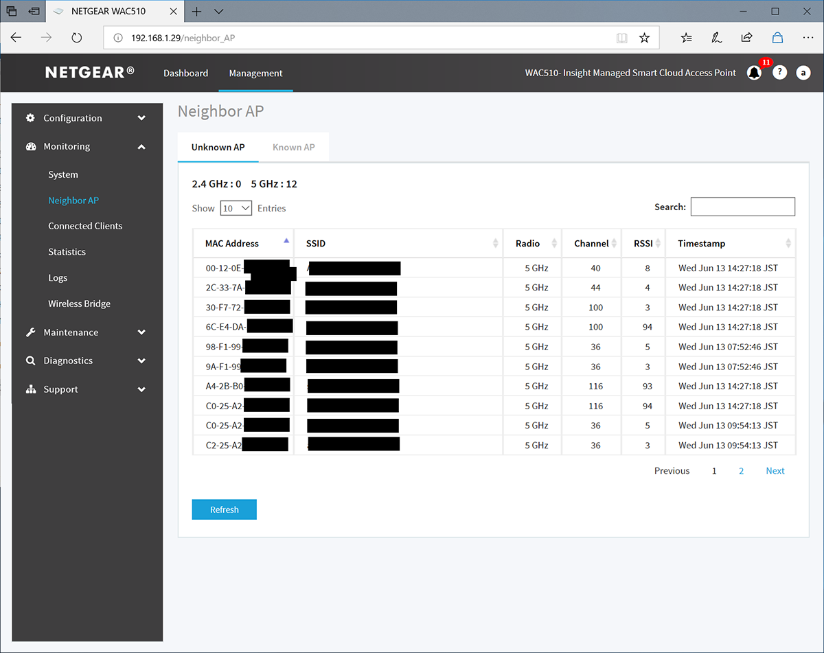 ダッシュボードから動作状況を手軽にチェックできる 周囲のアクセスポイントのチャネル利用状況もチェック可能