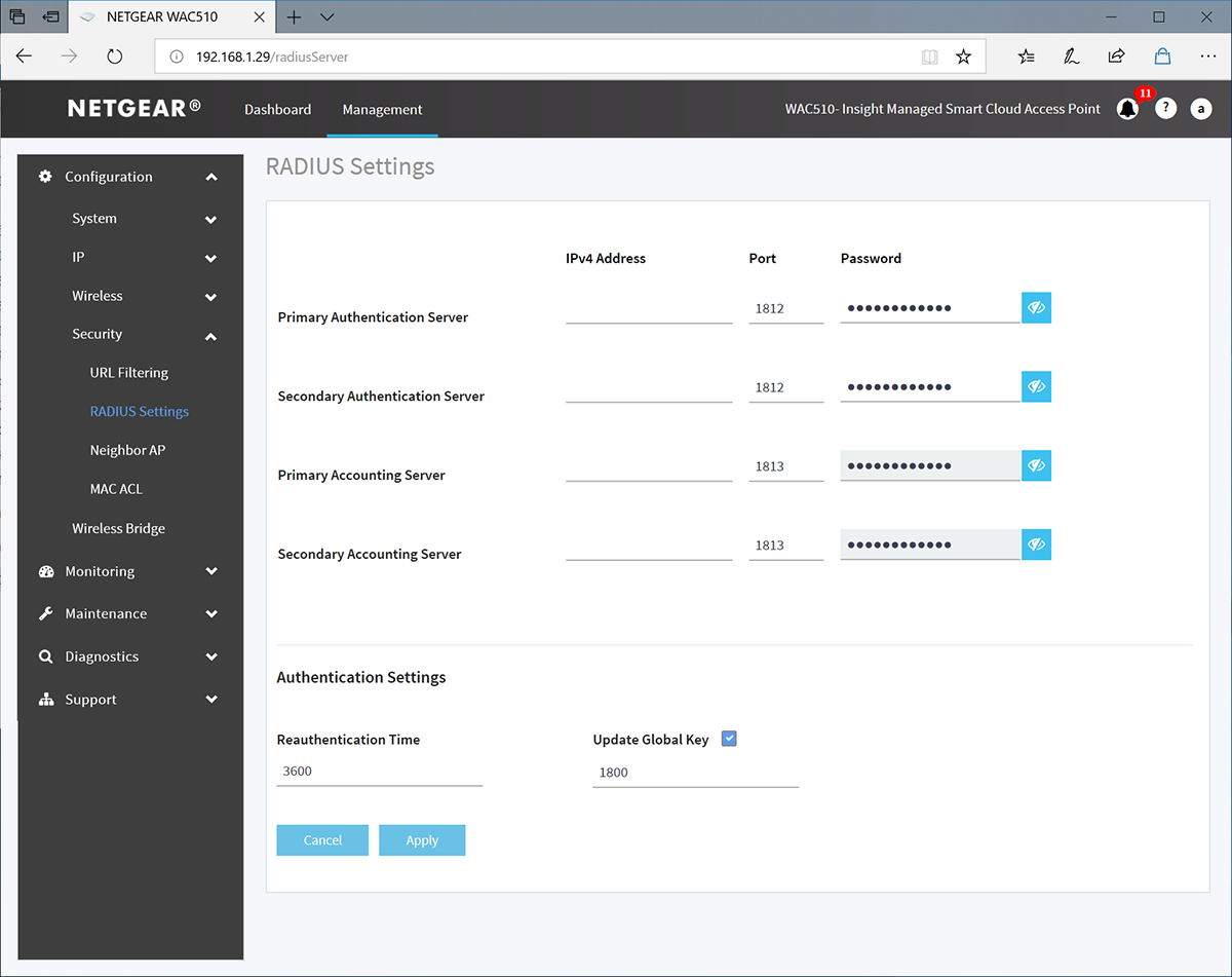 RADIUSサーバーを使った認証も可能 URLフィルタリングで業務に関係のないサイトへのアクセスも制限できる