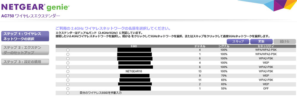 もちろん、手動での設定にも対応しており、有線LANでEX6100に接続したPCなどから、ウィザード形式で接続先のアクセスポイントを選択したり、クライアントに提供するSSIDや暗号キーを手動で設定することも可能なので、自分好みに設定したい場合は手動で設定するといいだろう。