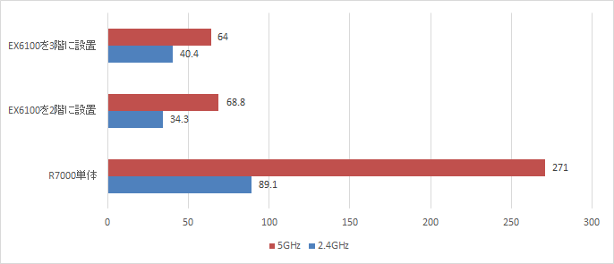クライアントに867Mbps対応のMacbook Airを利用した場合、3階でも271Mbpsの速度が実現できるため、EX6100を利用した場合よりも、利用しないケースの方が高い速度が得られることになる。