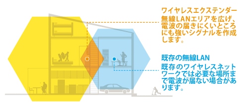そこで、注目したいのが、現状の無線LANの構成を保ちながら、手軽に通信エリアを拡張することができる「ワイヤレスエクステンダー」だ。