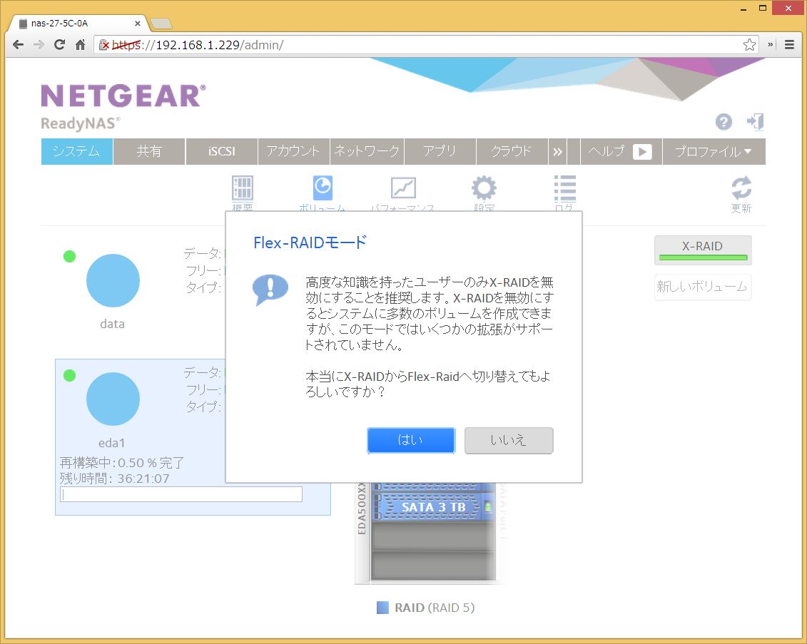 基本的には、X-RAIDを利用してボリュームを拡張し、どうしてもという場合のみ、自己責任でFlex-RAIDを使うようにしましょう。