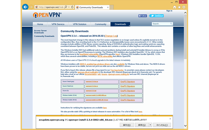 [1]R7000では、OpenVPNと呼ばれる形式のVPN接続をサポートしています。このため、OpenVPNのサイトから接続するパソコンに、OpenVPNのクライアントをダウンロードしてインストールします