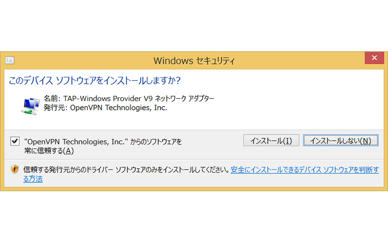 [3]インストール時に、VPN接続用のコンポーネントをインストールする必要があります。このような画面が表示されたら、「インストール」をクリックします