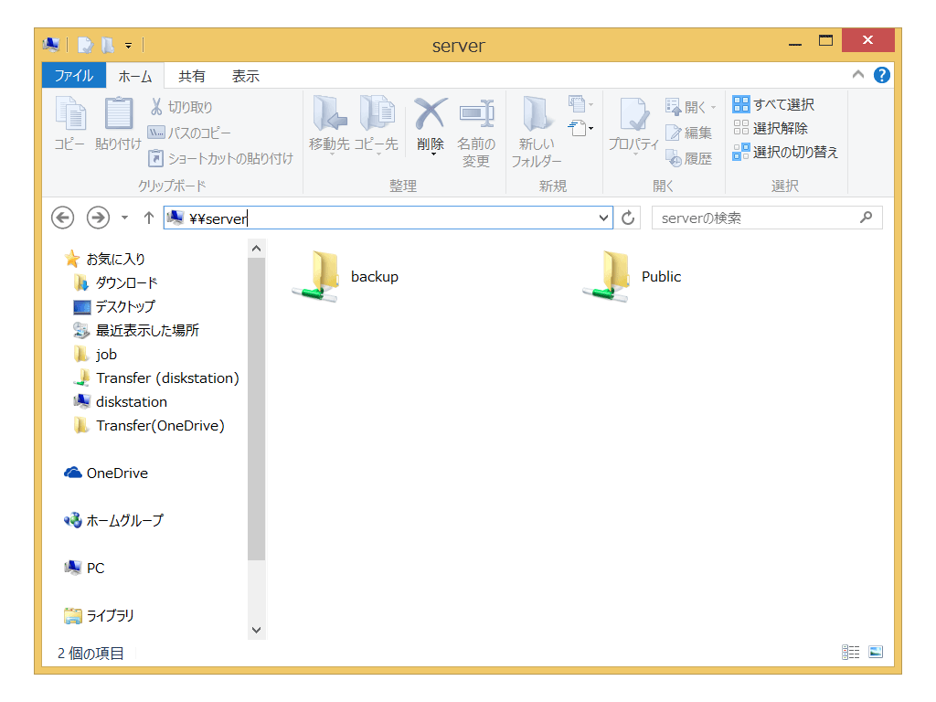 エクスプローラーから接続先を指定して、共有フォルダーにアクセス可能。ただし、接続先のパソコンが起動していないとアクセスできないので注意