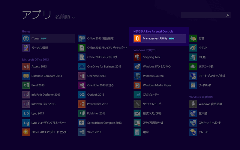 [4]インストールされたプログラムは、Windows 8.1の場合、アプリビューに登録されています。スタート画面からアプリビューに移動し、「Management Utility」のアイコンをクリックします