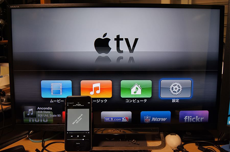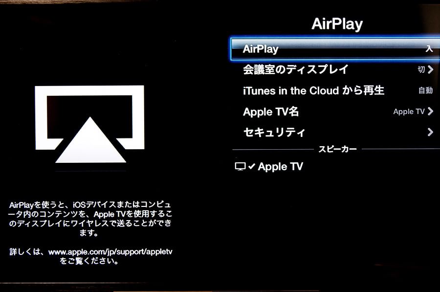 続いてApple TVをセットアップします。今回は、AirPlayの再生デバイスとしてApple TVを利用しますが、AirPlay対応AVアンプなども利用可能です。設置後に無線LANまたは有線LANでR7000に接続し、AirPlayを有効にしておきましょう。