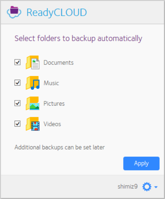 ReadyNAS上でReadyCLOUDのサービスを有効化後、同サービスを利用するためのアカウントを登録し、「ReadyCLOUD」アプリをダウンロード。再度サインイン後、同期するフォルダを選択すると、PC上の「ドキュメント」や「ピクチャ」、「ミュージック」などのフォルダが、自動的に自宅のReadyNASと同期されるようになる。