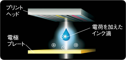 これまで大判プリンターなどプロ用のプリンターに搭載されていた自動ノズルチェック機能を採用し、プリントヘッドからマイナスの電荷を加えた微少なインク滴を電極プレートに定期的に吐出。このインク滴をクリーニングキャップ上に配置された電極プレートで検出することで、マイナス電荷の数をカウント。これによって、ノズルが詰まっているかどうかをチェックすることができる。またドット抜けが検出された場合は、抜けノズル数に応じたオートヘッドクリーニングが実行されるため、ノズル詰まりのトラブルが軽減される。