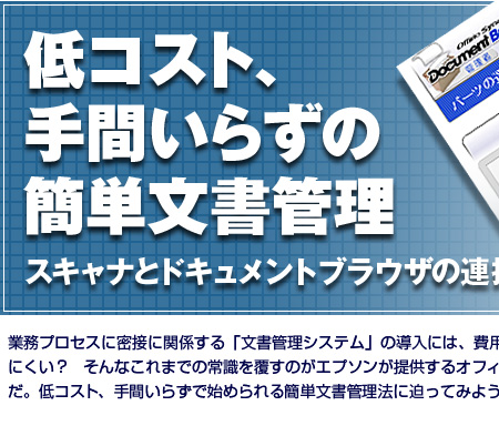 これなら、企業の部署単位での導入も可能なうえ、これまで文書管理システムを敬遠してきた中小企業、個人事務所などでも気軽に導入できる。前述したスキャナーのES-D400の標準価格が128,000円となっているため、ハードウェアとソフトウェアを合計した最低限のコストで考えても、20万円台からの導入も可能というわけだ。